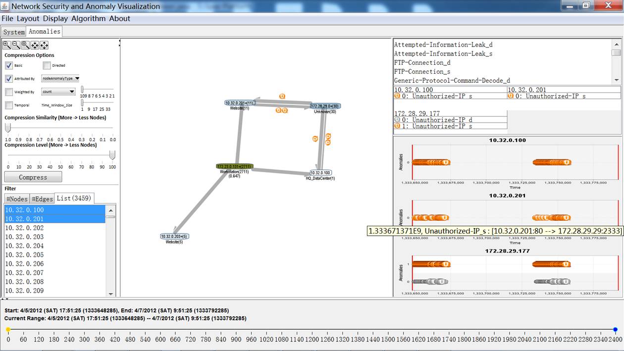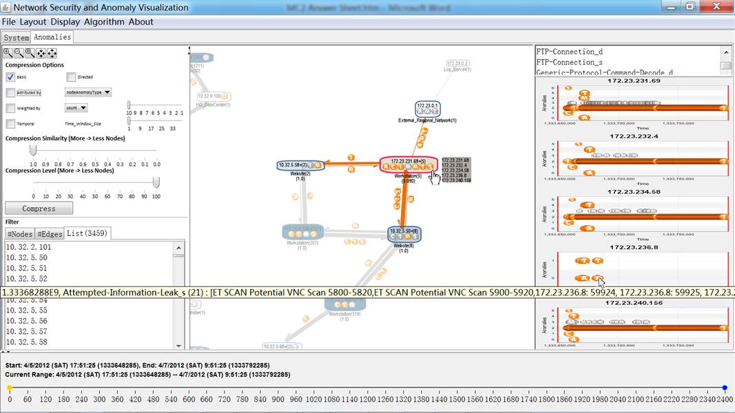 2. NSAV tool visualizing both the traffic graph abstraction and the anomalies